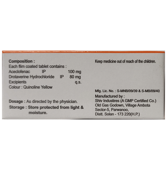 Marketer:Profic Organic Ltd,Composition:Drotaverine (80mg) + Aceclofenac (100mg),medicine_type:,