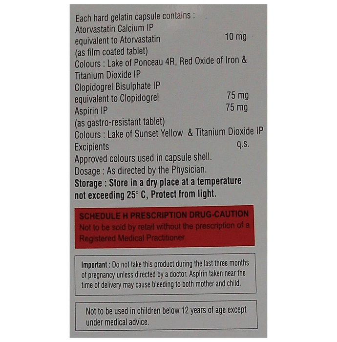 In Prevention of Heart attack Aova Gold 10 Capsule is a combination medicine that is used to prevent heart attack. It contains Atorvastatin that works by reducing the amount of “bad” cholesterol (LDL) and raising the amount of “good” cholesterol (HDL) in your blood. High levels of cholesterol can cause your blood vessels to narrow (atherosclerosis). Lowering the amount of cholesterol reduces the chances of heart diseases and helps you remain healthier for longer.u003cbr>u003cbr>Besides, it also contains two blood thinners, Aspirin and Clopidogrel, that together prevent the formation of blood clots and also prevent the existing ones from growing bigger in size. Take it regularly and make appropriate lifestyle changes (such as eating healthy and staying active) to maximize the effectiveness of this medicine. Keep taking it even if you feel well.