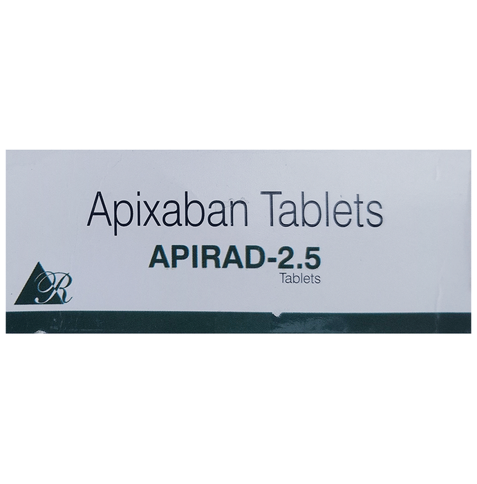 Manufacturer details:                                        Marketer details:Radius Drug Pvt Ltd | P No – 1 A, No – 111, Kheora, Kachhar, Mainawati Marg, Kanpur Nagar, Kanpur Nagar, Uttar Pradesh, 208017,                                                Description:Apirad 2.5 Tablet is a medicine known as an anticoagulant or blood thinner. It helps prevent and treat blood clots. It prevents and treats clot formation in the veins of your legs, lungs, brain, and heart. It is used to reduce the risk of stroke and heart attack. Apirad 2.5 Tablet is commonly used in patients with irregular heart rhythm (atrial fibrillation) to prevent clot formation. It also reduces the risk of getting clots in people who have undergone elective knee or hip replacement surgeries. It can be taken with or without food and it is best to take them at the same time each day. You may need to take this medicine for many years, even for life in some cases.Do not stop taking it or change the dose without guidance from your doctor. It could quickly put you more at risk of having a heart attack, stroke, or thrombosis (formation of a blood clot within a blood vessel). You can reduce your risk of having a blood clot by making changes to your lifestyle, such as not smoking, eating a healthy diet, getting regular exercise, and losing weight if you need to.The most common side effect of Apirad 2.5 Tablet is bleeding more easily than normal, for example, having nosebleeds or bruising. If you experience any symptoms, tell your doctor immediately. Other side effects include hematoma, anemia, and nausea.Do not take this medicine if you have severe kidney or liver problems, if you are currently bleeding, or if you are taking other medicines to reduce blood clotting. You should not breastfeed while using this medicine. Unlike other anticoagulants, a regular blood test (PT-INR) is not required while taking this medicine.