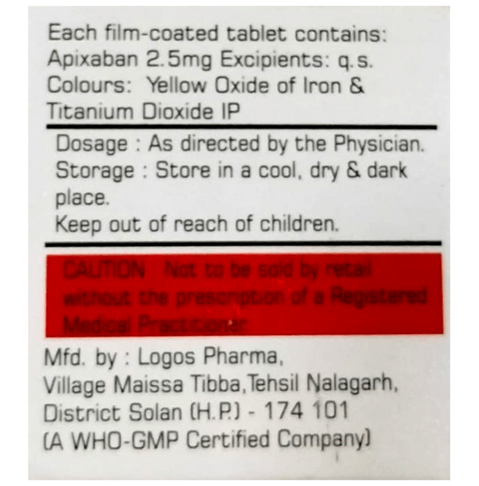 Marketer:Radius Drug Pvt Ltd,Composition:Apixaban (2.5mg),medicine_type:,