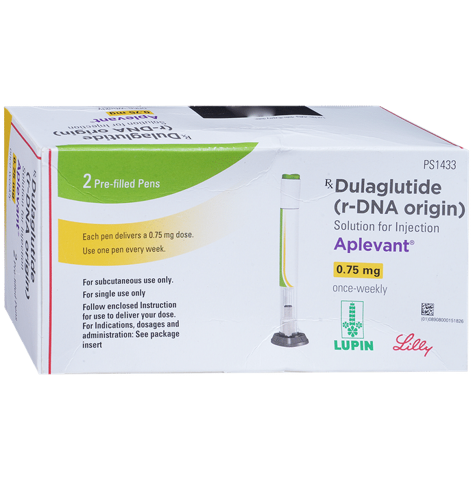 Aplevant 0.75mg Pre-filled Pen is an injectable medicine used to lower blood glucose levels in adults with type 2 diabetes. It works by helping your body produce insulin and reducing the amount of sugar your liver makes. The dose of Aplevant 0.75mg Pre-filled Pen will depend on your condition and what other diabetes medicines you are taking. You can use it at any time of day with or without food but try to use it on the same day each week to get the most benefit. Your doctor or nurse will show you how and where to inject the medicine. Follow the instructions carefully. Do not stop taking this medicine without talking to your doctor. If you do, your blood glucose levels may increase and put you at risk of serious complications. It should be used with a proper diet and exercise to control high blood glucose. Aplevant 0.75mg Pre-filled Pen should be stored in a fridge until you need it but do not freeze it.The most common side effects of Aplevant 0.75mg Pre-filled Pen include nausea, diarrhea, abdominal pain, and loss of appetite. It can also lead to hypoglycemia (low blood sugar level) especially if you are taking other medicines to lower blood sugar. Make sure you know how to recognize and deal with it.Before using this medicine, talk to your doctor if you have ever had liver or kidney disease, pancreatitis, or stomach problems. Also, tell your doctor if you are taking any other medicines which may affect the way this medicine works. If you are pregnant or breastfeeding, ask your doctor if it is safe to take Aplevant 0.75mg Pre-filled Pen.