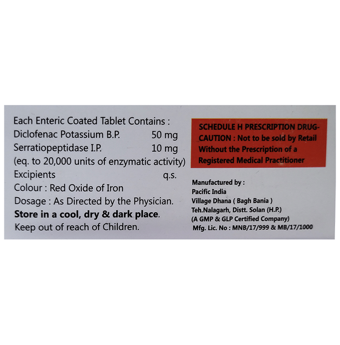 Marketer:Apotek Pharma Private Limited,Composition:Diclofenac (50mg) + Serratiopeptidase (10mg),medicine_type:,