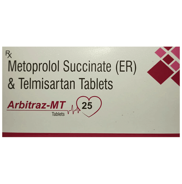 In Treatment of Hypertension (high blood pressure) Hypertension or an increase in blood pressure occurs when the blood vessels that supply blood to your heart become narrow. As a result of this, blood cannot flow smoothly to the heart, heart rate increases and it fails to pump blood effectively to other parts of the body. This puts a strain on the heart that can cause a chest pain or even a heart attack. u003cbr>Arbitraz MT 40mg/25mg Tablet reduces pressure in the blood vessels. It relaxes the blood vessels so that blood can flow more easily to your heart. This reduces strain on the heart and slows down heart rate. This further reduces the risk of having a stroke, a heart attack, or kidney problems in the future. u003cbr>You do not usually feel any direct benefit from taking this medicine, but it works in the long term to keep you well. You should take it regularly as prescribed for this medicine to be most effective, even if you feel better.
