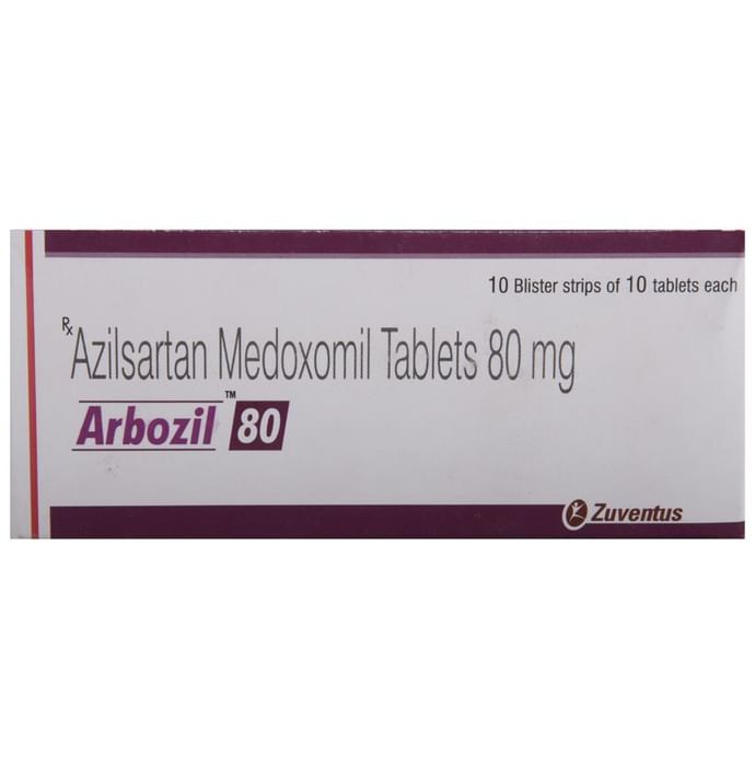 Manufacturer details:                                        Marketer details:Zuventus Healthcare Ltd | Office No. 5119, 5th Floor, ‘D’ Wing, Oberoi Garden Estates, Chandivili, Andheri (E), Mumbai – 400 072.,                                                Description:Arbozil 80 Tablet is a medicine used to treat high blood pressure and heart failure. Lowering blood pressure helps to prevent future heart attack and stroke. This medicine is also effective in preserving kidney function in patients with diabetes. Arbozil 80 Tablet can be prescribed either alone or in combination with other medicines. It may be taken with or without food during the day or at night. However, try to take it at the same time each day to get the most benefit. It is important to continue taking it regularly even if you feel well or if your blood pressure is controlled. Most people with high blood pressure do not feel ill, but if you stop taking this medicine, your condition could get worse. This is a widely used medicine and is considered safe for long-term use.Making some changes in your lifestyle will also help lower your blood pressure. These may include regular exercise, losing weight, smoking cessation, reducing alcohol intake, and reducing the amount of salt in your diet as advised by your doctor. This medicine is tolerated well by most patients and has few side effects. Dizziness, particularly after the first dose, is known to occur in some people. This may be associated with headache. Let your doctor know if these side effects bother you or do not go away. No weight gain has been seen with the regular use of this medicine.Before taking this medicine, let your doctor know if you have any kidney or liver problems. Pregnant or breastfeeding mothers should also consult their doctor before taking it. Your doctor may check your kidney function, blood pressure, and potassium levels in your blood at regular intervals while you are taking this medicine.
