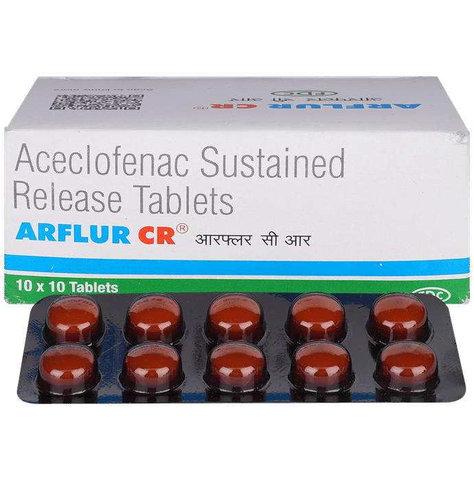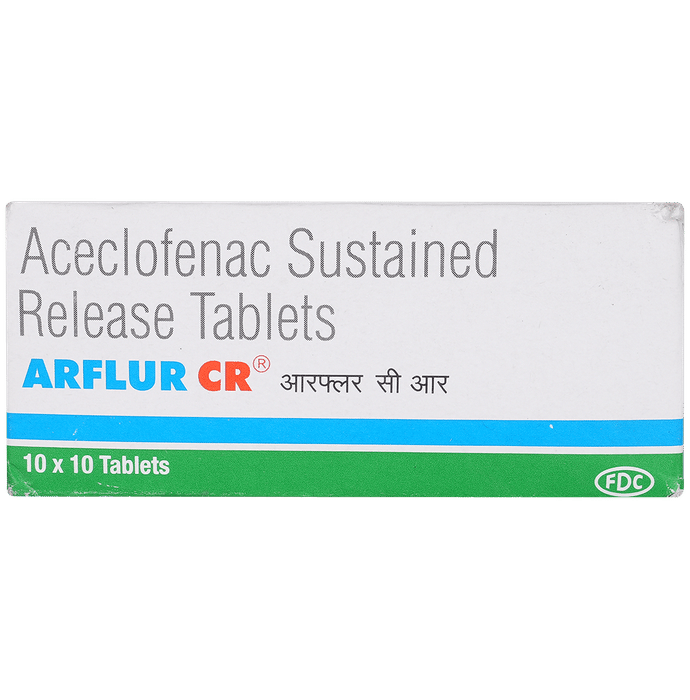 Manufacturer details:                                        Marketer details:FDC Ltd | B-8, MIDC Area, Waluj – 431 136, Dist. Aurangabad, Maharashtra,                                                Description:Arflur CR Tablet is a pain-relieving medicine. It effectively alleviates pain and inflammation in conditions like rheumatoid arthritis, ankylosing spondylitis, and osteoarthritis. Arflur CR Tablet should be taken in the dose and duration as advised by your doctor. It should be taken with food or milk to prevent stomach upset.Common side effects of this medicine include dizziness, indigestion, nausea, diarrhea, abdominal pain, and increased liver enzymes. Your doctor may regularly monitor your kidney function, liver function, and levels of blood components if you are taking this medicine for long-term treatment. Long-term use may lead to serious complications such as stomach bleeding and kidney problems.
