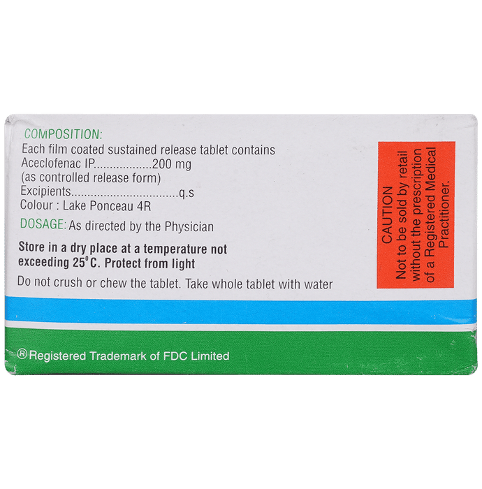 Marketer:FDC Ltd,Composition:Aceclofenac (200mg),medicine_type:,