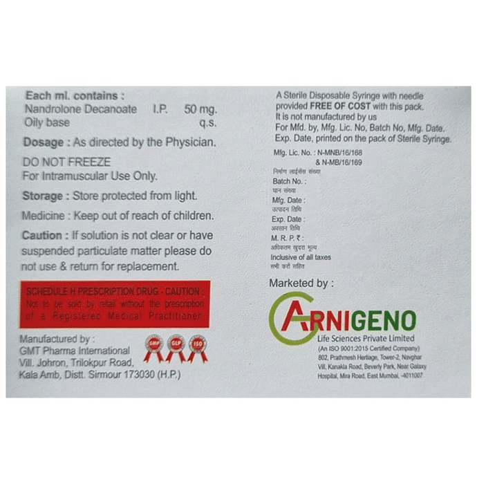 Marketer:Arnigeno Life Sciences Private Limited,Composition:Nandrolone Decanoate (50mg),medicine_type:,
