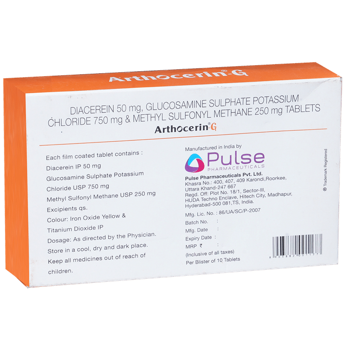 In Osteoarthritis Osteoarthritis is a condition that causes pain, swelling and stiffness in the joints of your hands, knees, hips and spine. Arthocerin-G Tablet helps you manage the symptoms of especially knee and hip osteoarthritis and restore mobility. Apart from this, Arthocerin-G Tablet might help in joint repair if taken at the start of symptoms. Mild symptoms of osteoarthritis can sometimes be managed by doing light exercises, losing weight and by wearing a suitable footwear.