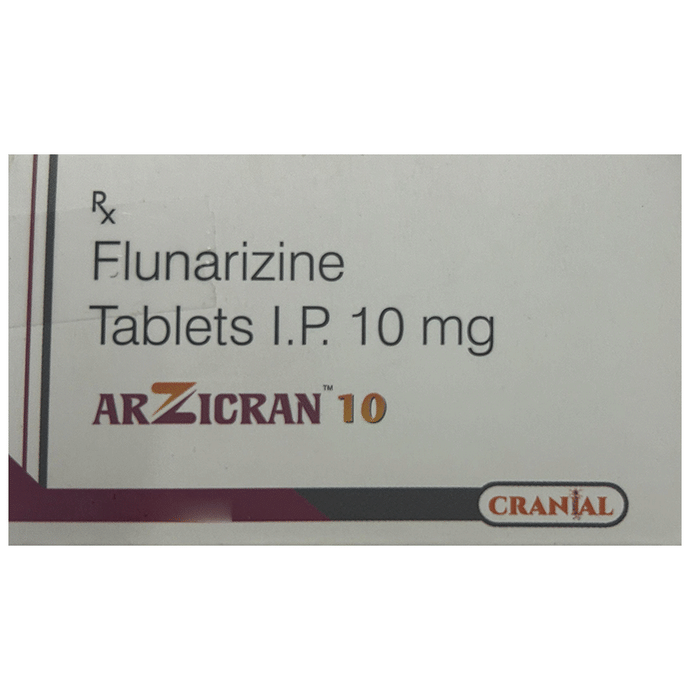 Manufacturer details:                                        Marketer details:Cranial Biotech Pvt Ltd | SECOND FLOOR ,203 THE CITY GATE, SHAHVADI VASNA AHMEDABAD GUJARAT 380007,                                                Description:Arzicran 10 Tablet is a medicine used for the prevention of migraines. However, it cannot treat an acute attack and will only work to prevent migraines for as long as you continue to take the medicine. This medicine relaxes the brain, preventing migraine headaches. Arzicran 10 Tablet may be taken with or without food. However, it is advised to take it at the same time each day as this helps to maintain a consistent level of medicine in the body. Do not skip any doses and finish the full course of treatment even if you feel better and if you have missed a dose, take it as soon as you remember. You should continue to take this medicine for as long as the doctor advises and do not stop taking it suddenly.Side effects associated with the use of this medicine include muscle pain, fatigue, constipation, nausea, insomnia (difficulty sleeping), and runny nose. Some other side effects that may be seen on taking this medicine are increased appetite, depression, stomach discomfort, and breast pain. It may also cause sleepiness at the beginning of your treatment, so do not drive, operate machinery, until you know how this medicine affects you.It may also cause weight gain and to prevent it you can eat a healthy balanced diet and should exercise regularly. This medicine may cause changes in your mood and you may feel depressed, therefore, regular monitoring of behavior is important. Pregnant or breastfeeding mothers should consult their doctor before taking this medicine.