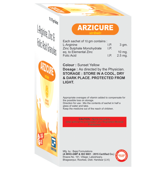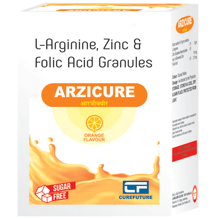 Manufacturer details:                                        Marketer details:Curefuture Healthcare Pvt. Ltd | House No-49 Ground Floor, Priya Darshani Vihar,Part-2 Model Town Delhi-110015,                                                Description:Arzicure Sugar Free Orange Sachet is a nutritional supplement. It is taken to treat conditions caused by nutritional deficiencies such as vitamins, minerals, and other nutrients in the body. It provides essential nutrients to our body and ensures proper growth and helps improve overall health. Arzicure Sugar Free Orange Sachet may be taken with or without food. Take it in the dose and duration advised by the doctor. To get the most benefit, take it regularly at the same time each day and continue taking it until your prescription is finished. Do not take it more than or longer than prescribed by the doctor, as that may cause harmful effects.It is generally safe medicine with little or no side effects. However, if you experience any symptom which you think is caused by the medicine, let your doctor know. They may be able to suggest ways to reduce or prevent the side effects.Before taking this medicine, it is important to let your doctor know if you have any preexisting medical conditions or if you are taking any other medications. This will ensure your safety to use this medicine. Pregnant and breastfeeding should consult their doctor before taking this medicine to make sure it is safe for them.