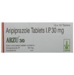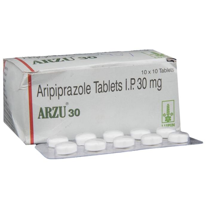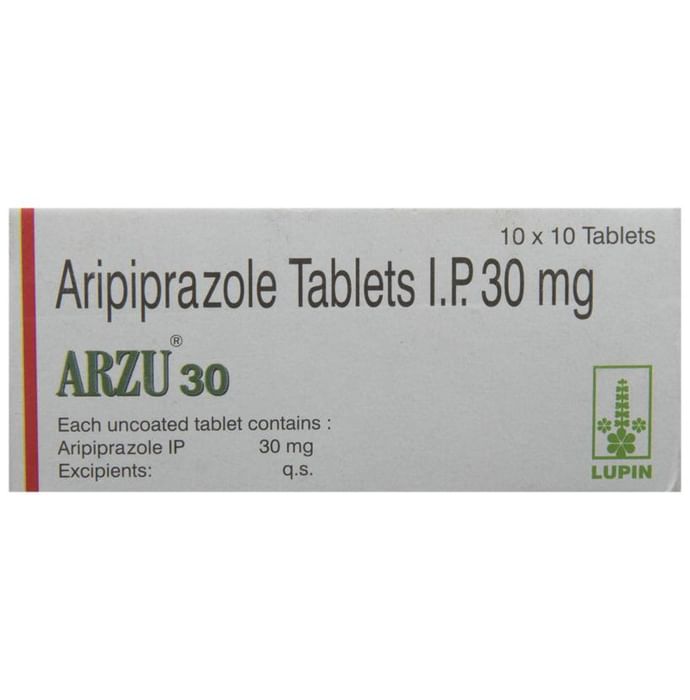 Manufacturer details:                                        Marketer details:Lupin Ltd | 3rd floor Kalpataru Inspire, Off. W E Highway, Santacruz (East), Mumbai 400 055. India,                                                Description:Arzu 30 Tablet is an antipsychotic medicine. It is used in the treatment of schizophrenia (a mental disorder that can result in hallucinations or delusions and also adversely affects a person’s ability to think and behave) and mania. It can also be used to treat depression and bipolar disorders. Arzu 30 Tablet is taken by mouth with or without food preferably at morning. However, it is advisable to take it at the same time each day as this helps to maintain consistent level of medicine in the body. Take this medicine in the dose and duration as advised by your doctor and if you have missed a dose, take it as soon as you remember. Do not skip any doses and finish the full course of treatment even if you feel better. It is important that this medication is not stopped suddenly without talking to doctor as it may worsen your symptoms. Some common side effects of this medicine includes nausea, vomiting, blurred vision, and dryness in mouth. Initially, this medicine may cause sudden drop in the blood pressure when you change positions, so it is better to rise slowly if you have been sitting or lying down. It also causes dizziness and sleepiness, so do not drive or do anything that requires mental focus until you know how this medicine affects you. This medicine may increase your blood sugar and cholesterol levels. However, modifying your lifestyle by having a healthy diet and doing exercise regularly can reduce this side effect. Remember to inform doctor if you develop any unusual changes in mood or behavior, new or worsening depression, or suicidal thoughts while taking this medicine.
