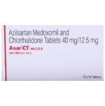 Manufacturer details:                                        Marketer details:Glenmark Pharmaceuticals Ltd | Glenmark Pharmaceuticals Limited, B/2, Mahalaxmi Chambers, 22, Bhulabhai Desai Road, Mumbai – 400 026.,                                                Description:Asar-CT 40/12.5 Tablet is a combination medicine used in the treatment of hypertension (high blood pressure). It works by relaxing the blood vessels and making the heart more efficient at pumping blood throughout the body. It also removes extra water and certain electrolytes from the body. Asar-CT 40/12.5 Tablet can be taken with or without food, but take it at the same time to get the most benefit. It should be taken as your doctor’s advice. The dose and how often you take it depends on what you are taking it for. Never skip any doses and finish a full course of treatment even if you feel better. It is important that this medication is not stopped suddenly without talking to the doctor as it may worsen your symptoms.It may cause side effects like tiredness, decreased potassium level in blood, decreased blood pressure, increased creatinine level in blood, and increased uric acid level in blood. It is advised to drink plenty of fluids while taking this medicine. It may cause dizziness, so do not drive or do anything that requires mental focus until you know how this medicine affects you. Regular monitoring of blood pressure is required while taking this medicine.Before taking this medicine, tell your doctor if you are pregnant or breastfeeding if you have ever had any problems with your blood circulation or have liver or kidney problems. Your doctor should also know about all other medicines you are taking as many of these may make this medicine less effective or change the way it works.