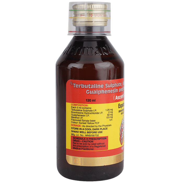 Marketer:Glenmark Pharmaceuticals Ltd,Composition:Bromhexine (2mg/5ml) + Guaifenesin (50mg/5ml) + Menthol (0.5mg/5ml) + Terbutaline (1.25mg/5ml),medicine_type:,