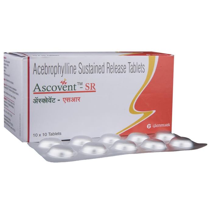 Manufacturer details:                                        Marketer details:Glenmark Pharmaceuticals Ltd | Glenmark Pharmaceuticals Limited, B/2, Mahalaxmi Chambers, 22, Bhulabhai Desai Road, Mumbai – 400 026.,                                                Description:Ascovent -SR Tablet is used to treat and prevent symptoms of asthma, bronchitis, and chronic obstructive pulmonary disorder (a lung disorder in which airflow to the lung is blocked). It helps relax the muscles of the air passages, thus widening them and making them easier to breathe. Ascovent -SR Tablet can be taken with the food in the evening. Take it at the same time every day to get the most benefit. The dose and how often you take it depends on what you take it for. Your doctor will decide how much you need to improve your symptoms. Take this medicine for as long as it is prescribed for you. Do not miss even a single dose. If missed, take it as soon as you remember, or skip the missed dose and continue with regular dosing if it’s almost time for the next dose. It does not work immediately or prevent the already-started breathing trouble; hence, always carry your medical inhaler for an emergency.The most common side effects of this medicine include abdominal discomfort, abdominal distension, vomiting, abdominal pain, diarrhea, constipation, and heartburn. If these bother you or appear serious, let your doctor know. There may be ways of reducing or preventing them. Generally, it is advised not to consume alcohol or do not smoke while on treatment.Before taking this medicine, tell your doctor if you have kidney, liver, or heart-related disease. Your doctor should also know about all other medicines you are taking, as many may make this medicine less effective or change its effect. Before starting the treatment, inform your doctor if you are pregnant or breastfeeding.