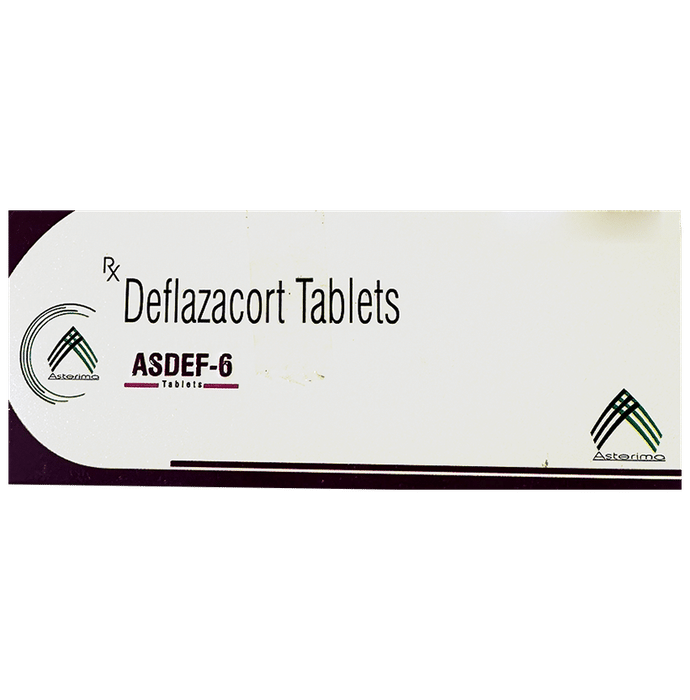 Manufacturer details:                                        Marketer details:Asterima Pharmaceuticals Pvt Ltd | E-309, THIRD FLOOR, CRYSTAL PLAZA OPP.INFINITY MALL, ANDHERI LINK ROAD, ANDHERI WEST MUMBAI Mumbai City MH 400053 IN,                                                Description:Asdef 6 Tablet belongs to a group of medicines called steroids. It is used for the treatment of various diseases and conditions such as inflammatory conditions and autoimmune conditions. Asdef 6 Tablet works by inhibiting the release of substances that cause swelling or by changing how the immune system works. It can be taken on an empty stomach or after food. Taking the medicine regularly at the right times increases its effectiveness. It is important to keep taking the medicine regularly until your doctor tells you it is safe to stop.Use of this medicine may cause some common side effects such as increased appetite, weight gain, frequent urge to urinate, Cushing syndrome, cough, upper respiratory tract infection, abnormal hair growth, obesity, and nasopharyngitis. If any of these side effects bother you, let your doctor know.Asdef 6 Tablet can make it harder for you to fight off infections. Tell your doctor if you have any signs of infection such as a fever or sore throat. Before taking the medicine, you should let your doctor know of all the other medicines you are taking. Pregnant and breastfeeding women should consult their doctors before taking the medicine.