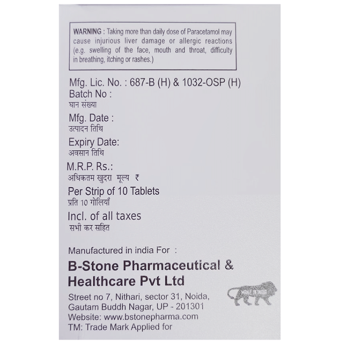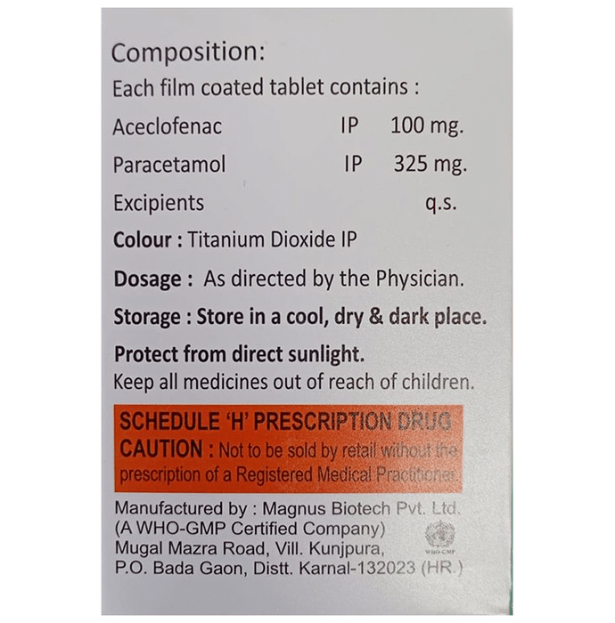 Marketer:B-Stone Pharmaceutical & Healthcare Pvt Ltd,Composition:Aceclofenac (100mg) + Paracetamol (325mg),medicine_type:,