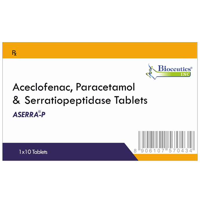 In Pain relief Aserra P Tablet is a combination medicine used for short-term relief of pain, inflammation, and swelling in conditions affecting joints and muscles. It works by blocking chemical messengers in the brain that tell us we have pain. It can help relieve pain in conditions like rheumatoid arthritis and osteoarthritis. Along with painkillers, this medicine also contains an active ingredient called Serratiopeptidase, which is an enzyme that promotes the overall healing process and speeds up recovery.u003cbr>u003cbr>Take it as it is prescribed to get the most benefit. Do not take more or longer than needed as that can be dangerous. In general, you should take the lowest dose that works, for the shortest possible time. This will help you to go about your daily activities more easily and have a better, more active, quality of life.