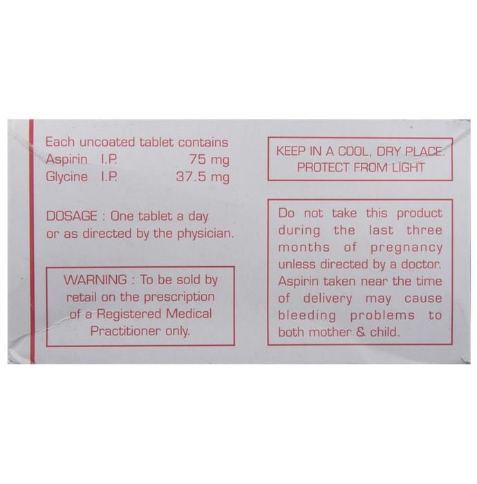 Marketer:Shreya Life Sciences Pvt Ltd,Composition:Aspirin (75mg) + Glycine (37.5mg),medicine_type:,