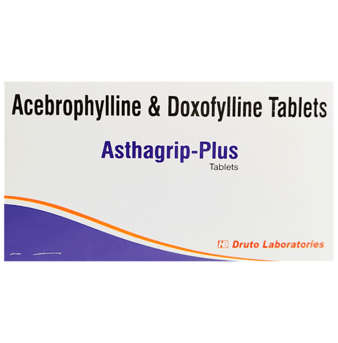 Manufacturer details:                                                                                Marketer details:Druto Laboratories | 1003 Kirti Shikhar Building, Janakpuri, Delhi – 110058, Distt Centre,                                                                                                Description:Asthagrip-Plus Tablet is used to treat asthma and chronic obstructive pulmonary disorder (a lung disorder in which the flow of air to the lungs is blocked). It helps in relaxing the muscles of the air passages and making it easier to breathe. Asthagrip-Plus Tablet also thins and loosens mucus in the nose, windpipe, and lungs making it easier to cough out. It is taken with food in a dose and duration as advised by the doctor. The dose you are given will depend on your condition and how you respond to the medicine. You should keep taking this medicine for as long as your doctor recommends. If you stop treatment too early your symptoms may come back and your condition may worsen. Let your healthcare team know about all other medications you are taking as some may affect, or be affected by this medicine.The most common side effects are nausea, vomiting, heartburn, stomach upset, headache, irritability, insomnia, increased heart rate, rash, and itching. Most of these are temporary and usually resolve with time. Contact your doctor straight away if you are at all concerned about any of these side effects.Before taking it, you should tell your doctor if you have any kidney or liver diseases so that your doctor can prescribe a suitable dose for you. You should also tell your doctor if you are pregnant, planning pregnancy or breastfeeding.