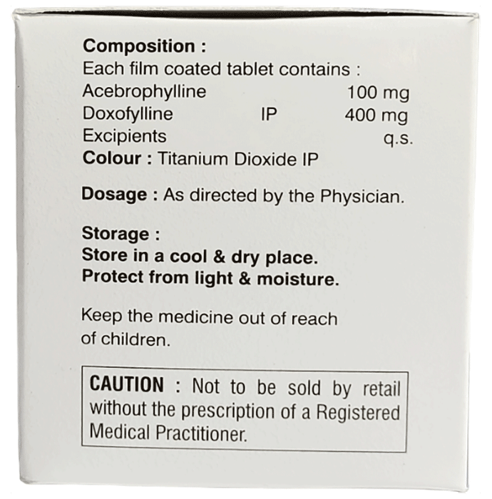 Marketer:Druto Laboratories,Composition:Doxofylline (400mg) + Acebrophylline (100mg),medicine_type:,