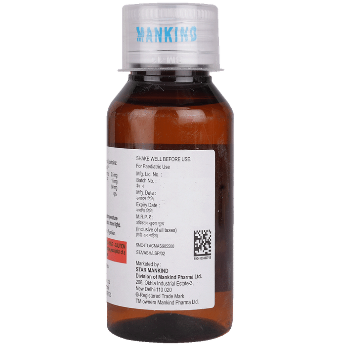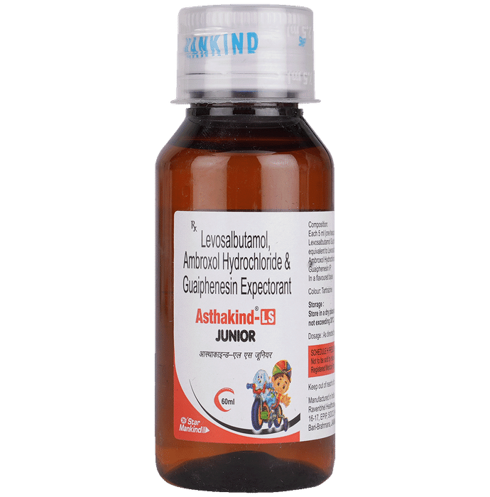 Manufacturer details:                                        Marketer details:Mankind Pharma Ltd | 208, Okhla Industrial Estate, Phase III, New Delhi – 110020,                                                Description:Asthakind-LS Junior Expectorant is a combination medicine used in the treatment of cough with mucus. It thins mucus in the nose, windpipe, and lungs, making it easier to cough out. It also provides relief from runny nose, sneezing, itching, and watery eyes. Asthakind-LS Junior Expectorant is taken with or without food in a dose and duration as advised by the doctor. The dose you are given will depend on your condition and how you respond to the medicine. You should keep taking this medicine for as long as your doctor recommends. If you stop treatment too early your symptoms may come back and your condition may worsen. Let your healthcare team know about all other medications you are taking as some may affect, or be affected by this medicine.The most common side effects are nausea, diarrhea, stomach pain, vomiting, muscle cramp, headache, skin rash, and increased heart rate. Most of these are temporary and usually resolve with time. Contact your doctor straight away if you are at all concerned about any of these side effects. This medicine can also cause sleepiness, so do not drive or do anything that requires mental focus until you know how this medicine affects you. Avoid drinking alcohol while taking this medicine as it can make sleepiness worse.Never support self-medication or recommend your medicine to another person. It is beneficial to have plenty of fluids while taking this medication. Before taking this medicine, you should tell your doctor if you are pregnant, planning pregnancy, or breastfeeding. You should also tell your doctor if you have any kidney or liver diseases so that your doctor can prescribe a suitable dose for you.