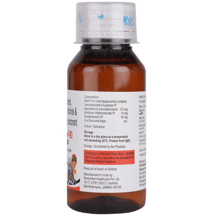 Marketer:Mankind Pharma Ltd,Composition:Ambroxol (15mg) + Levosalbutamol (0.5mg) + Guaifenesin (50mg),medicine_type:,
