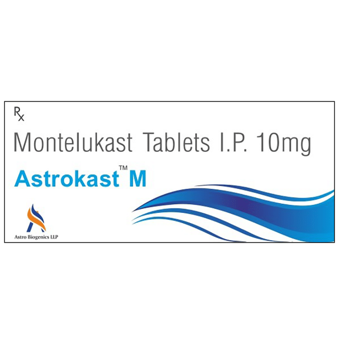 Manufacturer details: Marketer details:Astro Biogenics LLP | 102, CEN, GROUND FLOOR, 211 BUS ROAD RAJARHAT CHOWMATHA, NEAR COCACOLA GO RAJARHAT West Bengal 700135, Description:Astrokast M Tablet is a prescription medicine used for asthma prevention and for the treatment of allergy symptoms such as sneezing and runny nose. It reduces inflammation in the airways and makes breathing easier. Astrokast M Tablet can be taken with or without food. Take it at the same time to get the most benefit. It is advised to have it 2 hours before exercise if you have exercise-induced asthma. It should be taken as your doctor’s advice. The dose and how often you take it depends on what you are taking it for. Your doctor will decide how much you need to improve your symptoms. You should take this medicine for as long as it is prescribed for you. It does not cure sudden breathing problems, so always carry a medicated inhaler with you. It is generally safe medicine with few common side effects include nausea, vomiting, headache, abdominal pain, and diarrhea. If these bother you or appear serious, let your doctor know. There may be ways of reducing or preventing them. Generally, you should avoid alcohol while taking this medicine.Before taking this medicine, you should tell your doctor if you have ever had severe liver problems. Your doctor should also know about all other medicines you are taking as many of these may make this medicine less effective or change the way it works. You must inform your doctor about pregnancy or breastfeeding.