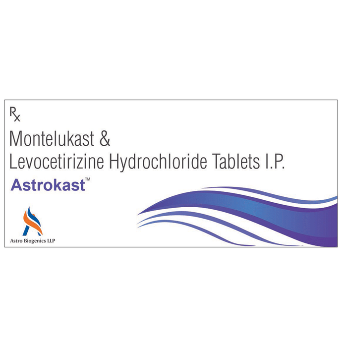 Manufacturer details:                                                                                Marketer details:Astro Biogenics LLP | 102, CEN, GROUND FLOOR, 211 BUS ROAD RAJARHAT CHOWMATHA, NEAR COCACOLA GO RAJARHAT West Bengal 700135,                                                                                                Description:Astrokast Tablet is a combination medicine used in the treatment of allergic symptoms such as runny nose, stuffy nose, sneezing, itching, swelling, watery eyes and congestion or stuffiness. It also reduces inflammation in the airways and make breathing easier. Astrokast Tablet is taken with or without food in a dose and duration as advised by the doctor. The dose you are given will depend on your condition and how you respond to the medicine. You should keep taking this medicine for as long as your doctor recommends. If you stop treatment too early your symptoms may come back and your condition may worsen. Let your healthcare team know about all other medications you are taking as some may affect, or be affected by this medicine.The most common side effects are nausea, diarrhea, vomiting, dryness in the mouth, headache, skin rash, flu-like symptoms, and fatigue. Most of these are temporary and usually resolve with time. Contact your doctor straight away if you are at all concerned about any of these side effects. This medicine may cause dizziness and sleepiness, so do not drive or do anything that requires mental focus until you know how this medicine affects you. Avoid drinking alcohol while taking this medicine as it can worsen your sleepiness.Never support self-medication or recommend your medicine to another person. It is beneficial to have plenty of fluids while taking this medication. Before you start taking this medicine it is important to inform your doctor if you are suffering from kidney disease.