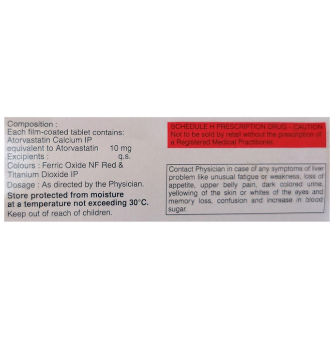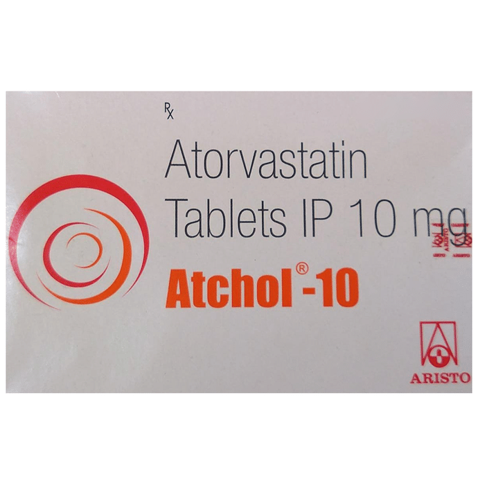 Manufacturer details:                                        Marketer details:Aristo Pharmaceuticals Pvt Ltd | Mercantile Chamber, 3rd Floor, 12, J.N. Heredia Marg, Ballard Estate, Mumbai – 400 001, India.,                                                Description:Atchol 10 Tablet belongs to a group of medicines called statins. It is used to lower cholesterol and to reduce the risk of heart diseases. Cholesterol is a fatty substance that builds up in your blood vessels and causes narrowing, which may lead to a heart attack or stroke. Atchol 10 Tablet is a widely prescribed medicine and is regarded as safe for long-term use when taken as per the doctor’s advice. It can be taken with a meal or on an empty stomach. You can take it at any time of the day but try to take it at about the same time each day. Most people with high cholesterol do not feel ill, but stopping your medicine may increase your cholesterol levels thereby increasing your risk of heart disease and stroke.It is important to have your cholesterol levels checked regularly. This medicine is only one part of the treatment program which should also include a healthy diet, regular exercise, smoking cessation, moderation of alcohol intake, and weight reduction. You can eat normally while taking this medicine, but try to avoid foods that are high in fat. Common side effects of this medicine include constipation, flatulence, dyspepsia, and abdominal pain. These are usually mild and disappear after a short time. Consult your doctor if they persist or if you notice any yellowing of your eyes or get repeated or unexplained muscle pains. This medicine should not be used in some conditions such as liver disease. Also, pregnant women and breastfeeding mothers should not take this medicine as it may harm the developing baby. Diabetic patients should monitor their blood sugar levels while taking this medicine, as it may lead to an increase in blood sugar levels. Your doctor may check your liver function before starting the treatment and monitor it regularly thereafter.