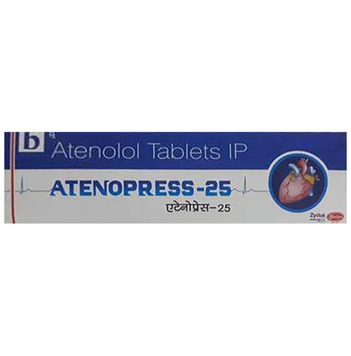 Manufacturer details:                                        Marketer details:Biochem Pharmaceutical Industries | BIOCHEM PHARMA, LG 113 / A, Xth Central Mall, Mahavir Nagar, 90ft Road, Next to D Mart, Kandivali – West, Mumbai – 400067.,                                                Description:Atenopress 25mg Tablet belongs to a group of medicines called beta-blockers. It is used to treat high blood pressure (hypertension), angina (heart-related chest pain), irregular heart rhythms (arrhythmia). It also helps to prevent future heart attacks and stroke. Atenopress 25mg Tablet may be prescribed alone or together with other medications. The dose and frequency depend on what you are taking it for and the severity of your condition. It may be taken empty stomach or with a meal, but take it regularly at the same time each day to get the most benefit. It may take several weeks before you get the full benefit of this medicine and you may need to take it for the rest of your life. However, it is important to continue taking it even if you feel well. Most people with high blood pressure do not feel ill and if you stop taking it, your condition may worsen.The main side effects of this medicine are fatigue, slow heart rate, feeling dizzy, diarrhea, and nausea. These are usually mild and short-lived. It may also cause shortness of breath or low blood pressure in some people. To reduce the risk of side effects your doctor will probably start the medicine at a low dose and gradually increase it. Consult your doctor if the side effects bother you or do not go away.Before taking it, let your doctor know if you have any liver problems. It may also not be suitable for people who have a slow heart rate, severe circulation problems, severe heart failure, or low blood pressure. Pregnant or breastfeeding mothers should also consult their doctor before taking it. You must talk to your doctor to find out whether this medicine is suitable for you to use. You should have your blood pressure checked regularly to make sure that this medicine is working properly. Avoid drinking alcohol as it may increase certain side effects.