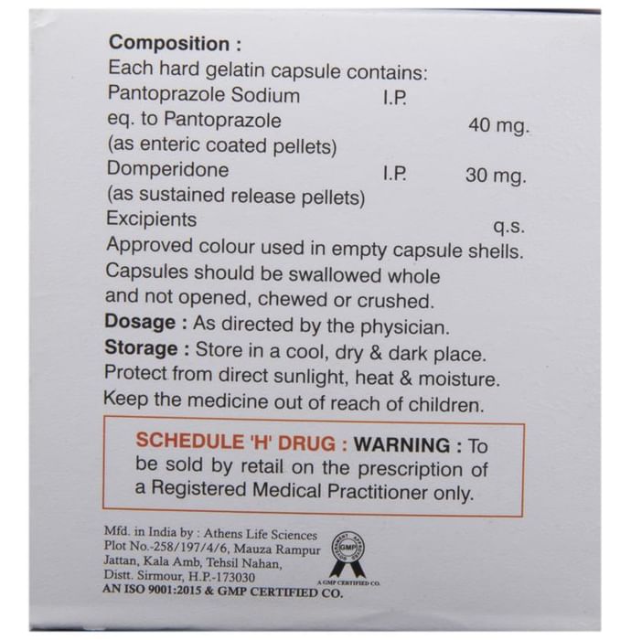 Marketer:Athens Labs Ltd,Composition:Domperidone (30mg) + Pantoprazole (40mg),medicine_type:,
