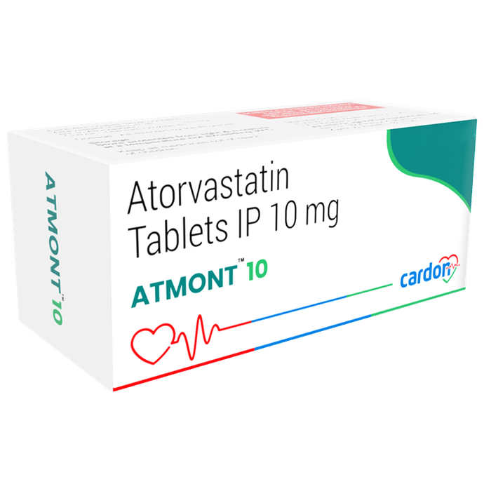 Manufacturer details:                                                                                Marketer details:Biotics Lab Life Services Private Limited | 22/255A, Pipe Line Road, Thikkakkara North Kalamassery, Ernakulam, Kerala, 683503,                                                                                                Description:Atmont 10mg Tablet belongs to a group of medicines called statins. It is used to lower cholesterol and to reduce the risk of heart diseases. Cholesterol is a fatty substance that builds up in your blood vessels and causes narrowing, which may lead to a heart attack or stroke. Atmont 10mg Tablet is a widely prescribed medicine and is regarded as safe for long-term use when taken as per the doctor’s advice. It can be taken with a meal or on an empty stomach. You can take it at any time of the day but try to take it at about the same time each day. Most people with high cholesterol do not feel ill, but stopping your medicine may increase your cholesterol levels thereby increasing your risk of heart disease and stroke.It is important to have your cholesterol levels checked regularly. This medicine is only one part of the treatment program which should also include a healthy diet, regular exercise, smoking cessation, moderation of alcohol intake, and weight reduction. You can eat normally while taking this medicine, but try to avoid foods that are high in fat. Common side effects of this medicine include constipation, flatulence, dyspepsia, and abdominal pain. These are usually mild and disappear after a short time. Consult your doctor if they persist or if you notice any yellowing of your eyes or get repeated or unexplained muscle pains. This medicine should not be used in some conditions such as liver disease. Also, pregnant women and breastfeeding mothers should not take this medicine as it may harm the developing baby. Diabetic patients should monitor their blood sugar levels while taking this medicine, as it may lead to an increase in blood sugar levels. Your doctor may check your liver function before starting the treatment and monitor it regularly thereafter.