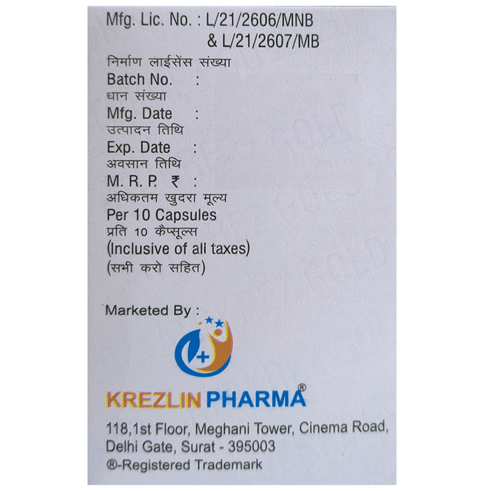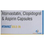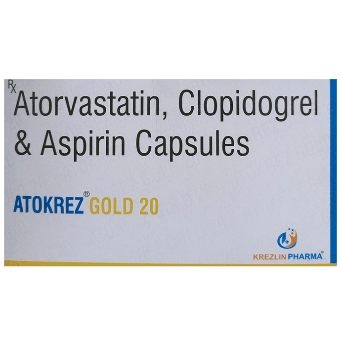 Manufacturer details: Marketer details:Krezlin Pharma | 118 ,1ST FLOOR, MEGHANI TOWER,CINEMA ROAD ,DELHI GATE ,SURAT-395003 MO-9376067240,9773275142, Description:Atokrez Gold 20 Capsule is used for the prevention of heart attack. It is a combination of medicines that prevent clot formation in the blood vessels. It also helps to reduce increased cholesterol and triglycerides levels. Atokrez Gold 20 Capsule should be taken with food regularly at a fixed time each day. You should take it regularly at evenly spaced intervals as per the schedule prescribed by your doctor. Taking it at the same time every day will help you remember to take it. The dose and duration of treatment will depend on what you are being treated for. Do not stop taking it until you have finished the complete course, even when you feel better. Lifestyle changes like a low-fat diet, exercise, and not smoking may help this medicine to work better.Abdominal pain, indigestion, bruising, and nosebleeds are some common side effects of this medicine. This medicine increases your risk of bleeding, so it is important to be careful while shaving, cutting nails, and using sharp objects. Let your doctor know if you notice muscle symptoms (pain or weakness), yellowing of the skin, and dark urine. Usually, it is advisable to avoid alcohol intake while taking this medicine.Before taking this medicine, tell your doctor if you have any liver or kidney disease. You must tell your doctor if you are pregnant, planning pregnancy, or breastfeeding. You should also let your healthcare team know all other medicines you are taking as they may affect, or be affected by this medicine.