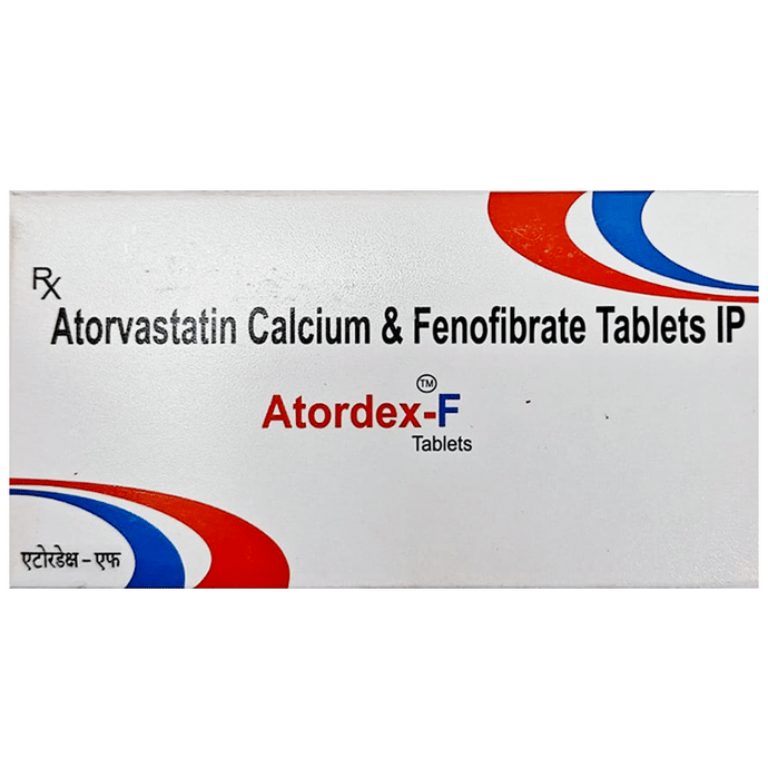 Manufacturer details:                                        Marketer details:Audex Pharmaceuticals | 239/1,SATYEN PARK, PURBO BARISHA,KOLKATA-700104,                                                Description:Atordex-F Tablet is a combination of two lipids (fat) lowering medicines. It is used to lower the levels of lipids known as cholesterol and triglycerides in the blood when lifestyle changes (eg. low-fat diet) on their own have failed. This medicine helps to reduce the risk of heart disease. Atordex-F Tablet can be taken with a meal or on an empty stomach. You can take it at any time of the day but try to take it at the same time each day. This will help you remember to take it. Your doctor will prescribe the right dose depending on your lipid levels and how you respond to this medicine. Most people with high cholesterol and triglyceride do not feel ill, but stopping your medicine may increase your lipid levels, making your condition worse and increasing your risk of heart disease and stroke.It is important to have your cholesterol and triglyceride levels (lipid profile) checked regularly. This medicine is only one part of a treatment program which should also include a healthy low-fat diet, regular exercise, smoking cessation, moderation of alcohol intake, and weight reduction. You can eat normally while taking this medicine, but try to avoid foods that are high in fat.Nausea, stomach pain, diarrhea, constipation, headache, insomnia, flatulence (excessive gas), and muscle pain are some of the common side effects of this medicine. These are usually mild and disappear after a short time. Consult your doctor if they persist or if you notice any yellowing of your eyes, unusual bleeding or bruising, or get repeated, severe, or unexplained muscle pains. You may be advised to get your liver function tested periodically while taking this medicine.This medicine should not be used in conditions such as liver disease (eg. abnormal blood tests for liver function, persistent yellowness of eyes, etc.). Before taking it, let your doctor know if you have any kidney-related problems or if you are pregnant, planning a pregnancy, or breastfeeding. Diabetic patients should monitor their blood sugar levels while taking this medicine, as it may lead to an increase in blood sugar levels.