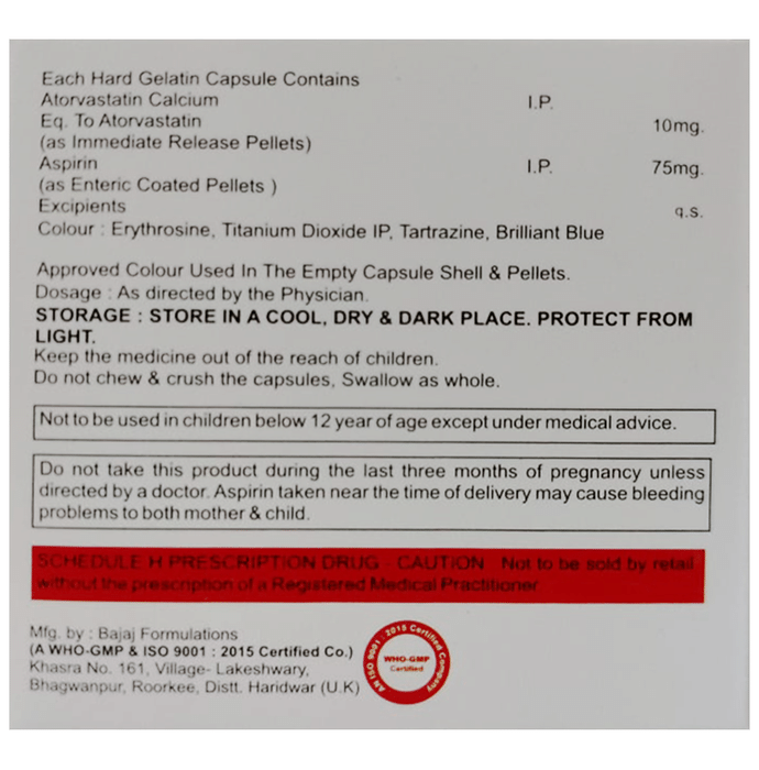 Marketer:Matias Healthcare Pvt Ltd,Composition:Atorvastatin (10mg) + Aspirin (75mg),medicine_type:,