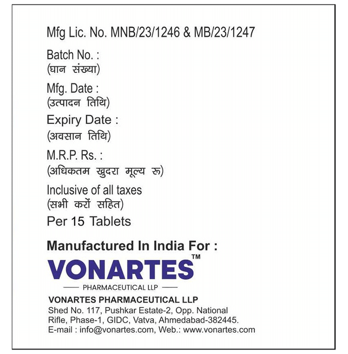 Manufacturer details:                                                                                Marketer details:Vonartes Pharmaceutical LLP | Shop NO. – 117, Pushkar Estate – 2, Opp. National Rifle Phase – 1, GIDC, Vatva, Ahmedabad – 382450,                                                                                                Description:Atorsartes 20 Tablet belongs to a group of medicines called statins. It is used to lower cholesterol and to reduce the risk of heart diseases. Cholesterol is a fatty substance that builds up in your blood vessels and causes narrowing, which may lead to a heart attack or stroke. Atorsartes 20 Tablet is a widely prescribed medicine and is regarded as safe for long-term use when taken as per the doctor’s advice. It can be taken with a meal or on an empty stomach. You can take it at any time of the day but try to take it at about the same time each day. Most people with high cholesterol do not feel ill, but stopping your medicine may increase your cholesterol levels thereby increasing your risk of heart disease and stroke.It is important to have your cholesterol levels checked regularly. This medicine is only one part of the treatment program which should also include a healthy diet, regular exercise, smoking cessation, moderation of alcohol intake, and weight reduction. You can eat normally while taking this medicine, but try to avoid foods that are high in fat. Common side effects of this medicine include constipation, flatulence, dyspepsia, and abdominal pain. These are usually mild and disappear after a short time. Consult your doctor if they persist or if you notice any yellowing of your eyes or get repeated or unexplained muscle pains. This medicine should not be used in some conditions such as liver disease. Also, pregnant women and breastfeeding mothers should not take this medicine as it may harm the developing baby. Diabetic patients should monitor their blood sugar levels while taking this medicine, as it may lead to an increase in blood sugar levels. Your doctor may check your liver function before starting the treatment and monitor it regularly thereafter.