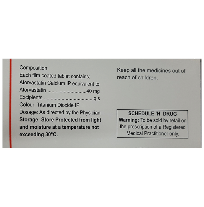 Manufacturer details:                                        Marketer details:Eris Lifesciences Ltd | 8th Floor, Commerce House IV, Prahladnagar, Ahmedabad – 380015 Gujarat, India,                                                Description:Atorsave 40 Tablet belongs to a group of medicines called statins. It is used to lower cholesterol and to reduce the risk of heart diseases. Cholesterol is a fatty substance that builds up in your blood vessels and causes narrowing, which may lead to a heart attack or stroke. Atorsave 40 Tablet is a widely prescribed medicine and is regarded as safe for long-term use when taken as per the doctor’s advice. It can be taken with a meal or on an empty stomach. You can take it at any time of the day but try to take it at about the same time each day. Most people with high cholesterol do not feel ill, but stopping your medicine may increase your cholesterol levels thereby increasing your risk of heart disease and stroke.It is important to have your cholesterol levels checked regularly. This medicine is only one part of the treatment program which should also include a healthy diet, regular exercise, smoking cessation, moderation of alcohol intake, and weight reduction. You can eat normally while taking this medicine, but try to avoid foods that are high in fat. Common side effects of this medicine include constipation, flatulence, dyspepsia, and abdominal pain. These are usually mild and disappear after a short time. Consult your doctor if they persist or if you notice any yellowing of your eyes or get repeated or unexplained muscle pains. This medicine should not be used in some conditions such as liver disease. Also, pregnant women and breastfeeding mothers should not take this medicine as it may harm the developing baby. Diabetic patients should monitor their blood sugar levels while taking this medicine, as it may lead to an increase in blood sugar levels. Your doctor may check your liver function before starting the treatment and monitor it regularly thereafter.