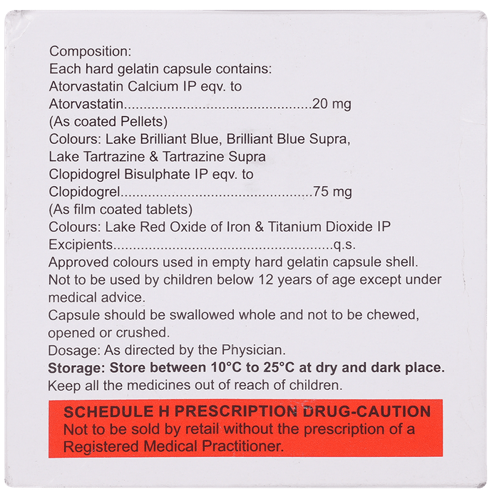 Marketer:Eris Lifesciences Ltd,Composition:Atorvastatin (20mg) + Clopidogrel (75mg),medicine_type:,