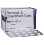 Manufacturer details:                                                                                Marketer details:Eris Lifesciences Ltd | 8th Floor, Commerce House IV, Prahladnagar, Ahmedabad – 380015 Gujarat, India,                                                                                                Description:Atorsave D 10 Tablet is a medicine used to treat high cholesterol. It is a combination of two medicines that reduces ‘__’bad’__’ cholesterol (LDL) and triglycerides (fats) levels in the body. It may also reduce the risk of future heart attack and stroke. Atorsave D 10 Tablet should be taken with food to avoid stomach upset. You should take it regularly at evenly spaced intervals as per the schedule prescribed by your doctor. Taking it at the same time every day will help you remember to take it. The dose and duration of treatment will depend on what you are being treated for. Do not stop taking it until you have finished the complete course, even when you feel better. Lifestyle changes like low-fat diet, exercise and not smoking may help this medicine to work better.Nausea, stomach pain, constipation, and muscle weakness are some common side effects of this medicine. It decreases the amount of calcium in your blood, so have regular blood tests to monitor the level of calcium. Let your doctor know if you notice yellowing of skin, muscle pain or dark urine. You may be asked for regular monitoring of liver function or blood sugar level while taking this medicine.Before taking this medicine, tell your doctor if you are pregnant, planning pregnancy or breastfeeding. You should also let your healthcare team know all other medicines you are taking as they may affect, or be affected by this medicine.