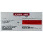 Manufacturer details:                                        Marketer details:Concur Pharmaceuticals Pvt.Ltd | RZ-32/33 Matiala Extension , Uttam Nagar , New Delhi- 110059,                                                Description:Atorset 10mg Tablet belongs to a group of medicines called statins. It is used to lower cholesterol and to reduce the risk of heart diseases. Cholesterol is a fatty substance that builds up in your blood vessels and causes narrowing, which may lead to a heart attack or stroke. Atorset 10mg Tablet is a widely prescribed medicine and is regarded as safe for long-term use when taken as per the doctor’s advice. It can be taken with a meal or on an empty stomach. You can take it at any time of the day but try to take it at about the same time each day. Most people with high cholesterol do not feel ill, but stopping your medicine may increase your cholesterol levels thereby increasing your risk of heart disease and stroke.It is important to have your cholesterol levels checked regularly. This medicine is only one part of the treatment program which should also include a healthy diet, regular exercise, smoking cessation, moderation of alcohol intake, and weight reduction. You can eat normally while taking this medicine, but try to avoid foods that are high in fat. Common side effects of this medicine include constipation, flatulence, dyspepsia, and abdominal pain. These are usually mild and disappear after a short time. Consult your doctor if they persist or if you notice any yellowing of your eyes or get repeated or unexplained muscle pains. This medicine should not be used in some conditions such as liver disease. Also, pregnant women and breastfeeding mothers should not take this medicine as it may harm the developing baby. Diabetic patients should monitor their blood sugar levels while taking this medicine, as it may lead to an increase in blood sugar levels. Your doctor may check your liver function before starting the treatment and monitor it regularly thereafter.