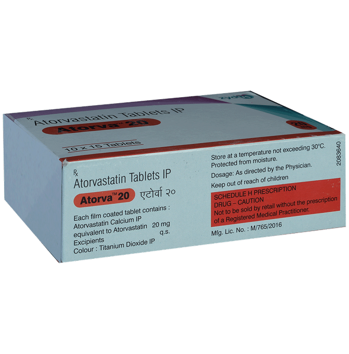 Manufacturer details:                                        Marketer details:Zydus Cadila | Zydus Tower, Satellite Cross Roads,Ahmedabad – 380015 Gujarat, India.,                                                Description:Atorva 20 Tablet belongs to a group of medicines called statins. It is used to lower cholesterol and to reduce the risk of heart diseases. Cholesterol is a fatty substance that builds up in your blood vessels and causes narrowing, which may lead to a heart attack or stroke. Atorva 20 Tablet is a widely prescribed medicine and is regarded as safe for long-term use when taken as per the doctor’s advice. It can be taken with a meal or on an empty stomach. You can take it at any time of the day but try to take it at about the same time each day. Most people with high cholesterol do not feel ill, but stopping your medicine may increase your cholesterol levels thereby increasing your risk of heart disease and stroke.It is important to have your cholesterol levels checked regularly. This medicine is only one part of the treatment program which should also include a healthy diet, regular exercise, smoking cessation, moderation of alcohol intake, and weight reduction. You can eat normally while taking this medicine, but try to avoid foods that are high in fat. Common side effects of this medicine include constipation, flatulence, dyspepsia, and abdominal pain. These are usually mild and disappear after a short time. Consult your doctor if they persist or if you notice any yellowing of your eyes or get repeated or unexplained muscle pains. This medicine should not be used in some conditions such as liver disease. Also, pregnant women and breastfeeding mothers should not take this medicine as it may harm the developing baby. Diabetic patients should monitor their blood sugar levels while taking this medicine, as it may lead to an increase in blood sugar levels. Your doctor may check your liver function before starting the treatment and monitor it regularly thereafter.