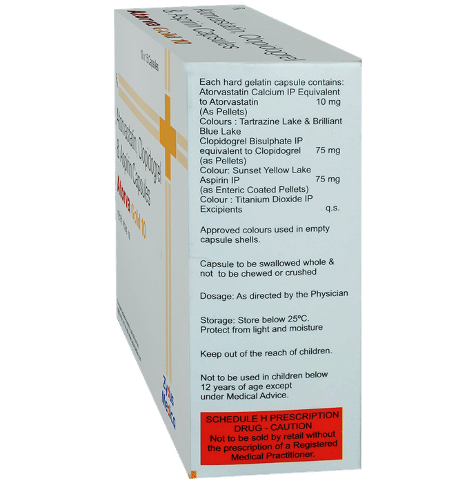 Marketer:Zydus Cadila,Composition:Aspirin (75mg) + Atorvastatin (10mg) + Clopidogrel (75mg),medicine_type:,