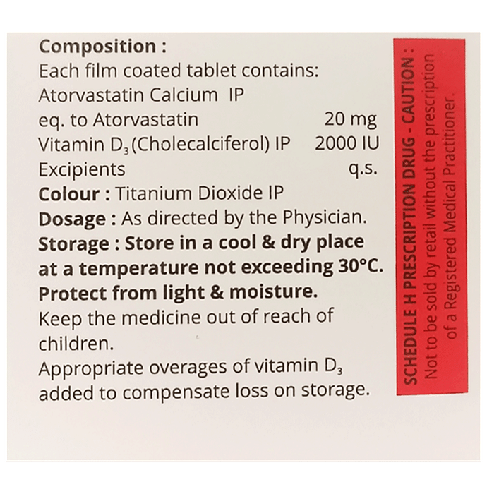 Marketer:SCG Healthcare Private Limited,Composition:Atorvastatin (20mg) + Vitamin D3 (2000IU),medicine_type:,