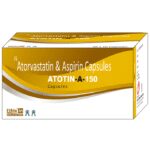In Treatment of Prevention of heart attack and stroke Atotin-A 150 Capsule is a combination medicine that is used to prevent heart attack. It contains Atorvastatin that works by reducing the amount of “bad” cholesterol (LDL) and raising the amount of “good” cholesterol (HDL) in your blood. High levels of cholesterol can cause your blood vessels to narrow (atherosclerosis). Lowering the amount of cholesterol reduces the chances of heart diseases and stroke and helps you remain healthier for longer. u003cbr>u003cbr>Besides, it also contains a blood thinner, Aspirin, that prevents the formation of blood clots and also prevents the existing ones from growing bigger in size. Take it regularly and make appropriate lifestyle changes (such as eating healthy and staying active) to maximize the effectiveness of this medicine. Keep taking it even if you feel well.
