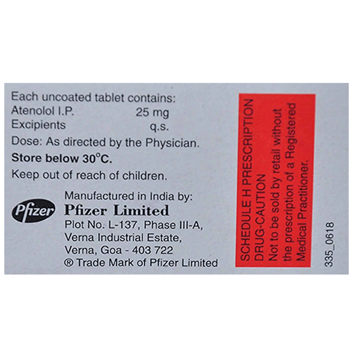 Marketer:Pfizer Ltd,Composition:Atenolol (25mg),medicine_type:,