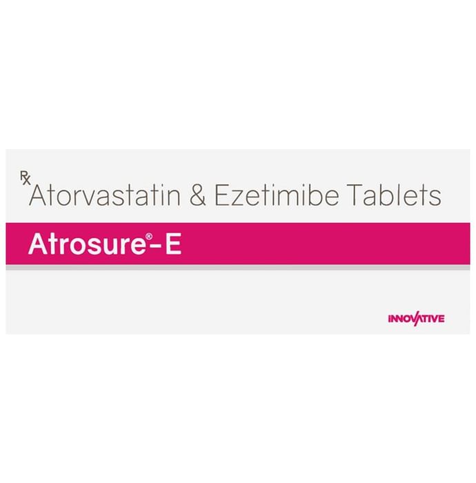 Manufacturer details:                                        Marketer details:Innovative Pharmaceuticals | 501, Pearl Arcade, J.P.Road, Andheri (West), Mumbai-58, (Mahrashtra) INDIA,                                                Description:Atrosure-E Tablet is a medicine used to treat high cholesterol. It is a combination of two medicines that reduces ‘__’bad’__’ cholesterol (LDL) and triglycerides (fats) levels. Atrosure-E Tablet can be taken with or without food. You should take it regularly at evenly spaced intervals as per the schedule prescribed by your doctor. Taking it at the same time every day will help you remember to take it. The dose and duration of treatment will depend on what you are being treated for. Do not stop taking it until you have finished the complete course, even when you feel better. You can help this medicine work better by making a few changes to your lifestyle such as keeping active, stopping smoking, eating a healthy low-fat diet and exercise regularly.Nausea, stomach pain, constipation, and muscle pain are some common side effects of this medicine. These are usually mild but let your doctor know if they bother you or last more than a few days. Let your doctor know if you notice yellowing of skin or eyes, unusually dark urine or dark stools as it might be symptoms of liver damage. You may be asked for regular monitoring of blood sugar level, and liver function while taking this medicine.Before taking this medicine, let your doctor know if you have any kidney or liver problems or high blood pressure. Pregnant or breastfeeding women should also consult their doctor before taking it. You should also let your healthcare team know all other medicines you are taking as they may affect, or be affected by this medicine.