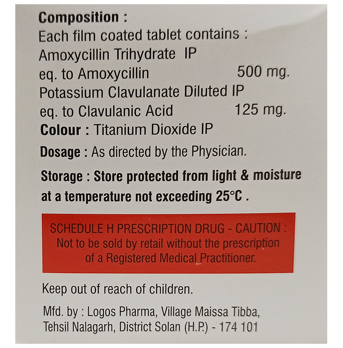 Marketer:Unilex Lifesciences Pvt Ltd,Composition:Amoxycillin (500mg) + Clavulanic Acid (125mg),medicine_type:,