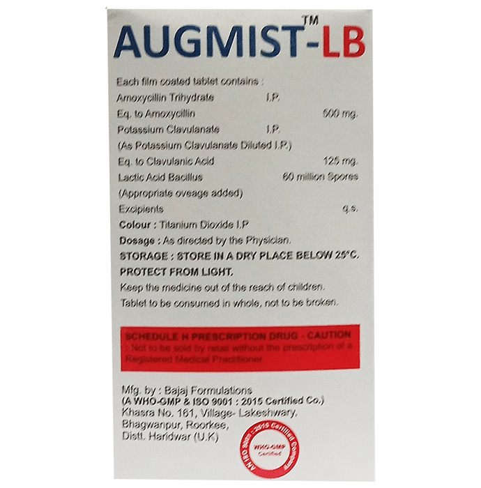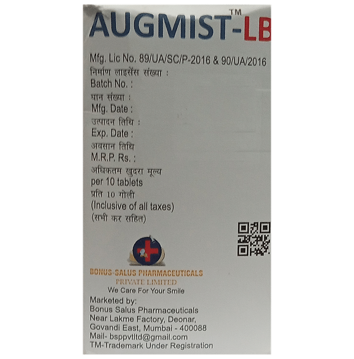 In Bacterial infections Augmist-LB Tablet is a medicine that helps to kill the bacteria that cause infections. This combination medicine can be used to treat many different bacterial infections. It causes loss of the useful bacteria that are present naturally in our body. It contains probiotics that help restore the useful bacteria, improve digestion and enhance overall health. Augmist-LB Tablet usually makes you feel better within a few days, but you should continue taking it as prescribed even when you feel better to make sure that all bacteria are killed and do not become resistant.