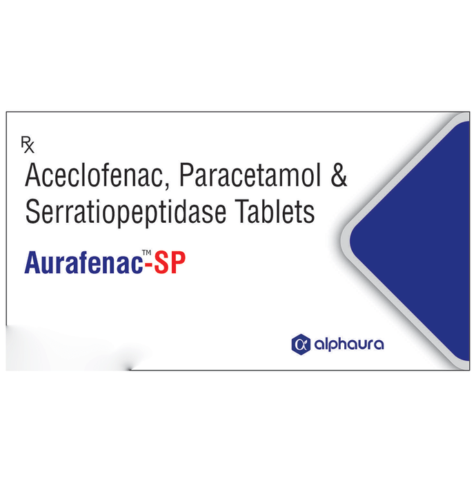 In Pain relief Aurafenac-SP Tablet is a combination medicine used for short-term relief of pain, inflammation, and swelling in conditions affecting joints and muscles. It works by blocking chemical messengers in the brain that tell us we have pain. It can help relieve pain in conditions like rheumatoid arthritis and osteoarthritis. Along with painkillers, this medicine also contains an active ingredient called Serratiopeptidase, which is an enzyme that promotes the overall healing process and speeds up recovery.u003cbr>u003cbr>Take it as it is prescribed to get the most benefit. Do not take more or longer than needed as that can be dangerous. In general, you should take the lowest dose that works, for the shortest possible time. This will help you to go about your daily activities more easily and have a better, more active, quality of life.