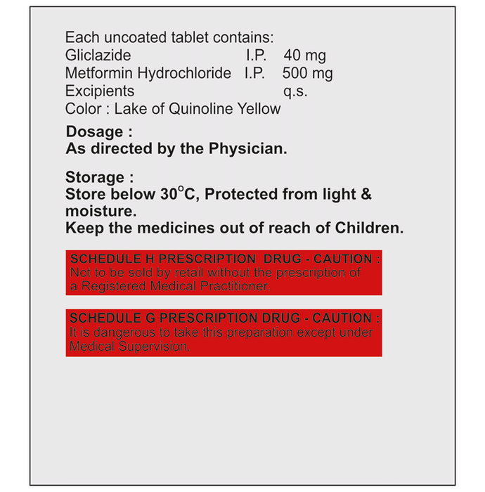 Marketer:Aura Lifecare Private Limited,Composition:Gliclazide (40mg) + Metformin (500mg),medicine_type:,